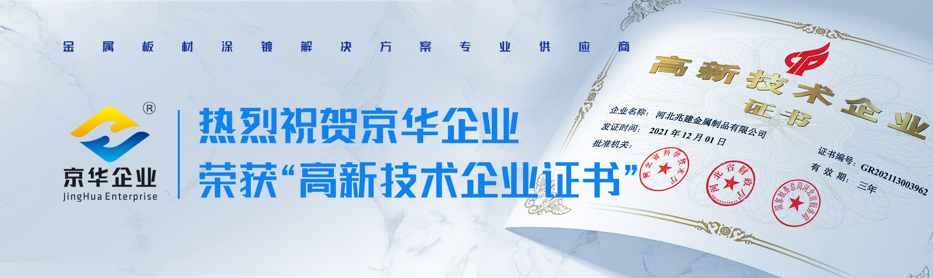 河北兆建金屬制品有限公司始建于2010年11月,注冊資金1億元人民幣,占地面積70萬平方米,總投資為25.9億元,年生產能力320萬噸(其中:軋硬產品120萬噸、鍍鋅產品120萬噸,彩涂產品80萬噸)。專業生產冷軋板、鍍鋅板、鍍鋁鋅板、印花板、冷覆膜板、熱覆膜板、建筑彩涂板、家電彩涂板。選用設備力求高起點、高水平和高質量,打造國際一流水平的設備生產線,具備生產周期短、效率高、產品精度高、質量好和能耗等優點。